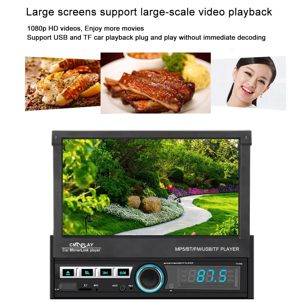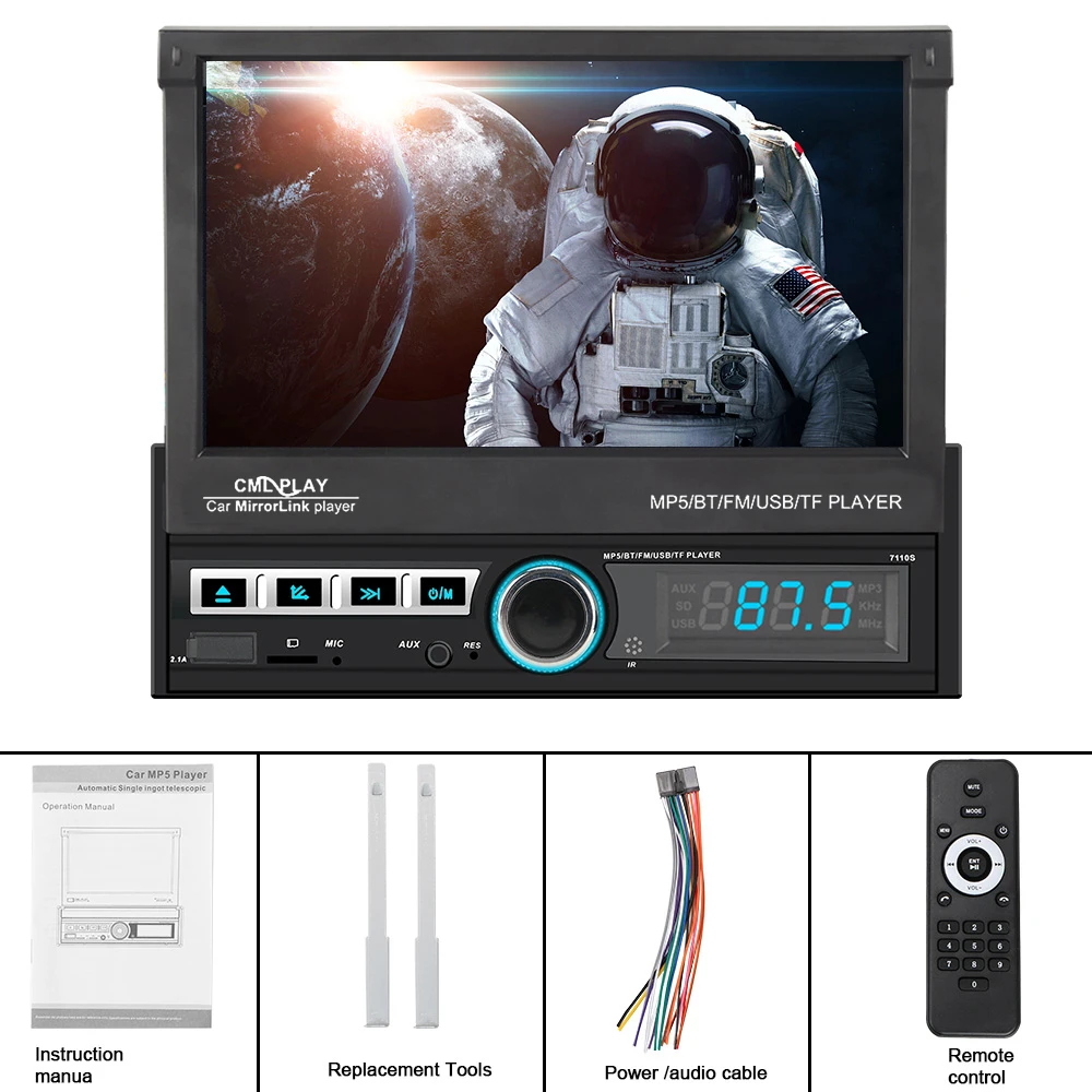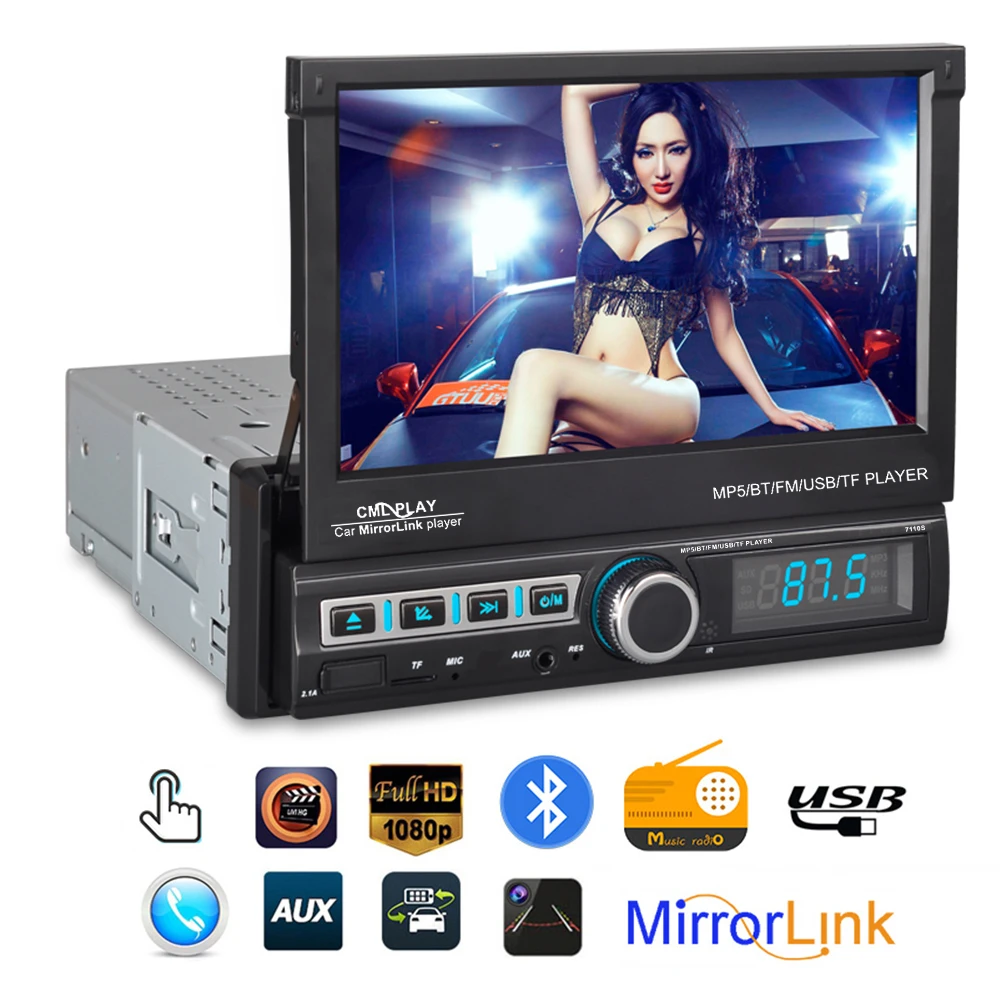 Automatic Telescopic Mp5 Bluetooth Fm Aux Radio Stereo Car Mirror Link Player 7 Touch Screen 1 Din Car Autoradio Cml Player Car Multimedia Player Aliexpress