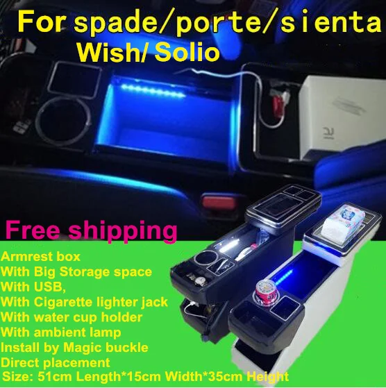 For Toyota Sienta Wish Spade Porte Solio Multifunctional Car Console Box Armrest Storage Box With Usb Atmosphere Light Armrests Aliexpress