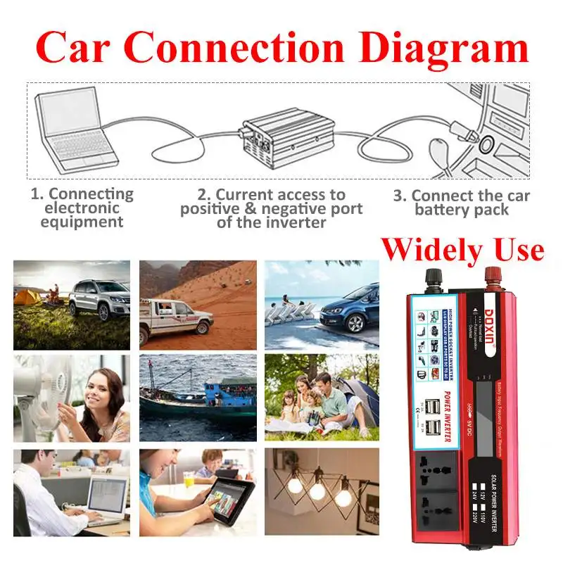 4000291433261 6000W Watt 4 USB LCD Display DC 12/24V to AC 220V Car Power Inverter Charger Converter Adapter Modified Sine Wave Transformer. The high-efficiency 12V24V48V pure sine wave inverter converts the DC power stored in the battery to a standard household AC power source providing you with quiet AC power anytime anywhere. US6499 US10899 40 Off 6000W Peak Car Power Inverter LCD Display DC 12 24V to AC 110V 220V Modified Sine Wave Converter 140 reviews COD US1599 1500W Pure Sine Wave Solar Power Inverter 1224V DC to 120220V AC Converter Car Inverter 0 review COD. LCD Display Car Power Inverter Converter Charger 4000W 12V TO 220V110V Dual USB.