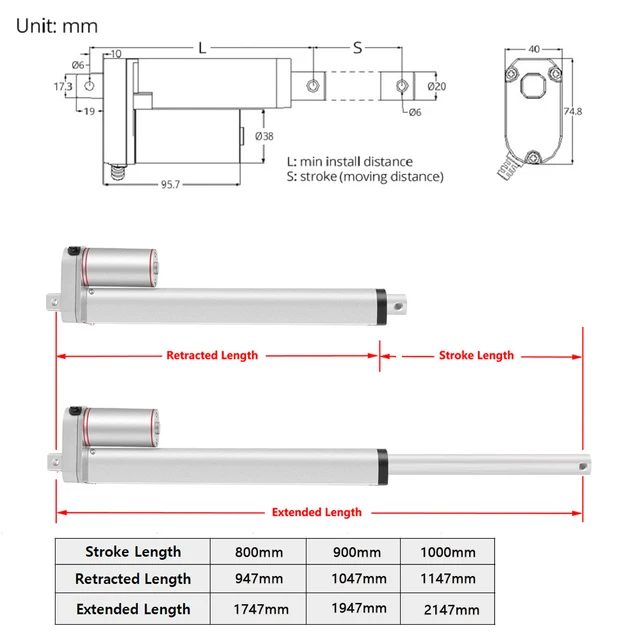 Stroke Linear Actuator Dc12v Electric Motor 900n Water-proof Heavy Duty 150mm. 12V24V Linear actuator 800mm 900mm 1000mm stroke WIFI Controller metal gear linear motor For Window Door Open 1Moving speed higherthe force is lower at the same time 2Strokemoving distance800mm900mm1000mm. 300 mm Stroke Length 6000N Pushing Force.